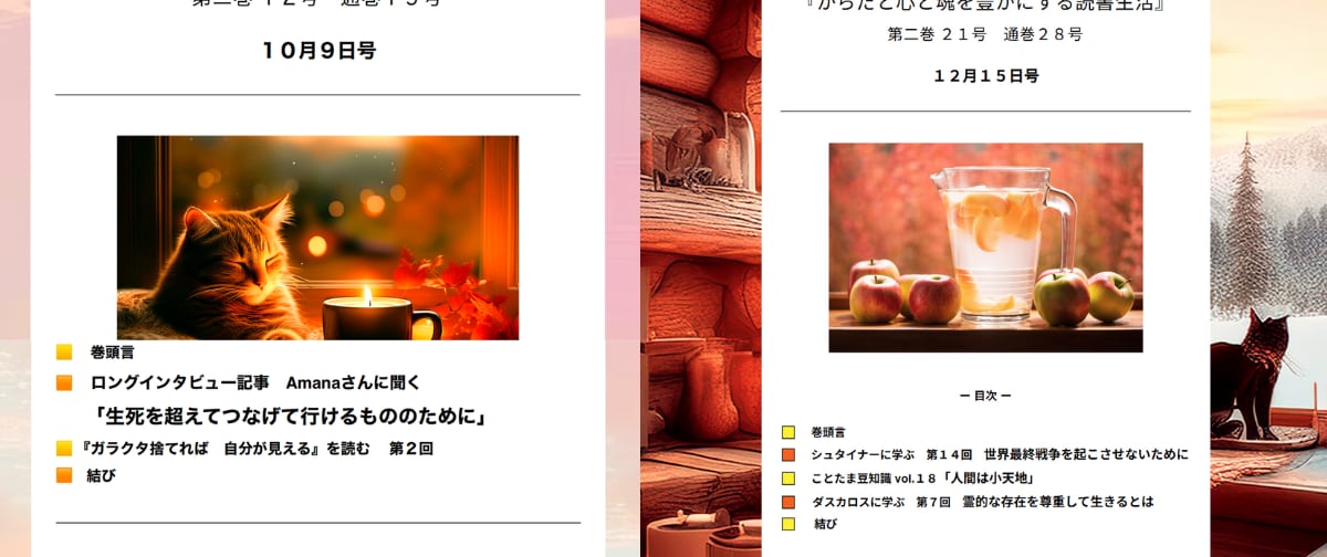 『からだと魂と霊をつなぐ読書生活』は月2回(15日、27日)、一年を通して配信してゆきます。(購読開始月から一年ごとに更新)詳しくは、本Webサイトの「有料メールマガジン」のページをご覧ください。