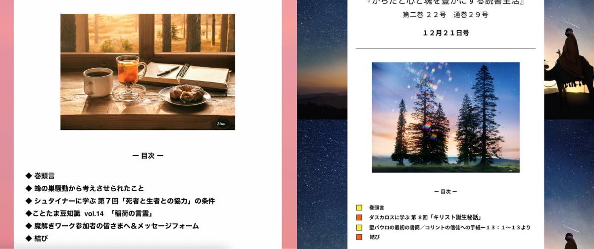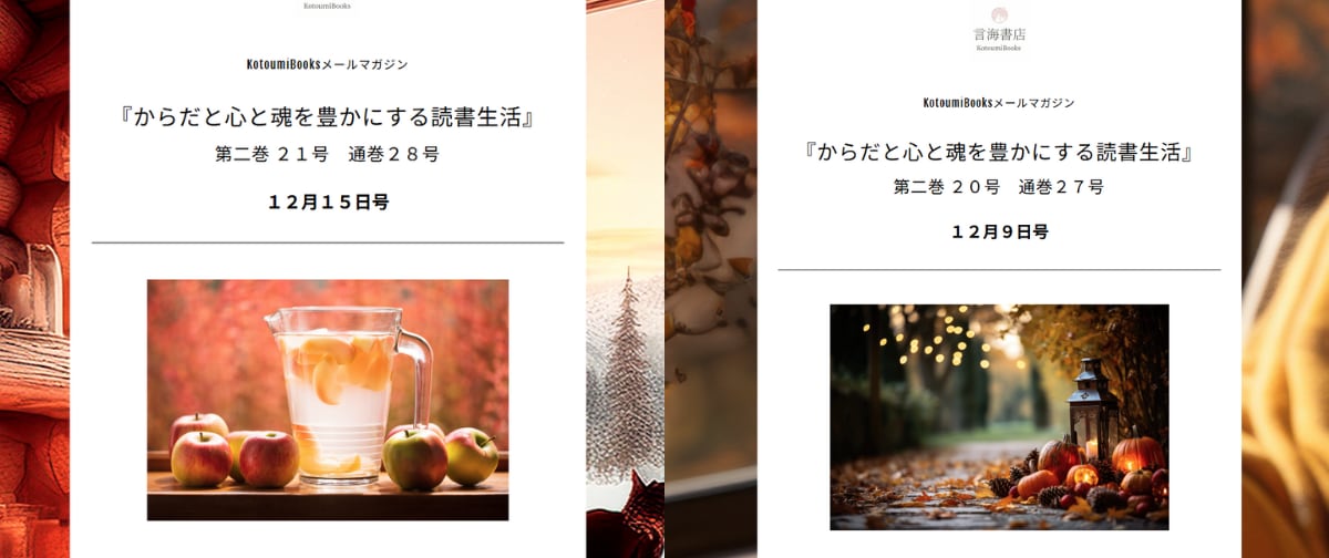 『からだと魂と霊をつなぐ読書生活』は月2回(15日、27日)、一年を通して配信してゆきます。(購読開始月から一年ごとに更新)詳しくは、本Webサイトの「有料メールマガジン」のページをご覧ください。
